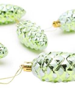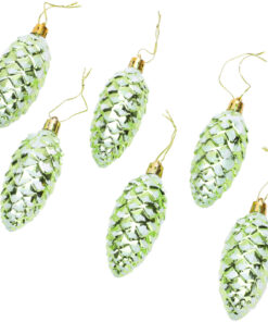 Christmas Concepts® Pack of 6–90mm Shiny & Glitter Decorated Pine Cone Baubles – Christmas Tree Decorations (Lime Green)