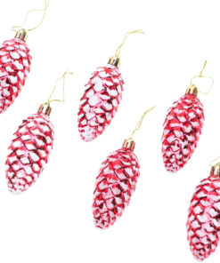 Christmas Concepts® Pack of 6–90mm Shiny & Glitter Decorated Pine Cone Baubles – Christmas Tree Decorations (Red)