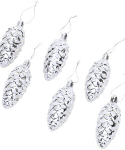 Christmas Concepts® Pack of 6–90mm Shiny & Glitter Decorated Pine Cone Baubles – Christmas Tree Decorations (Silver)