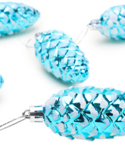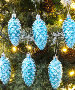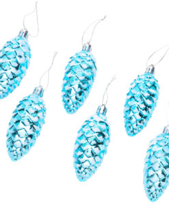 Christmas Concepts® Pack of 6–90mm Shiny & Glitter Decorated Pine Cone Baubles – Christmas Tree Decorations (Turquoise)