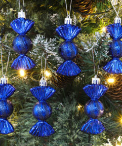 Christmas Concepts® Pack of 6–90mm Sweet Shaped Baubles – Shiny & Glitter Decorated – Christmas Tree Decorations (Midnight Blue)
