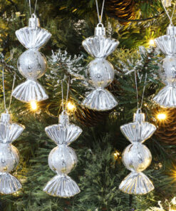 Christmas Concepts® Pack of 6–90mm Sweet Shaped Baubles – Shiny & Glitter Decorated – Christmas Tree Decorations (Silver)