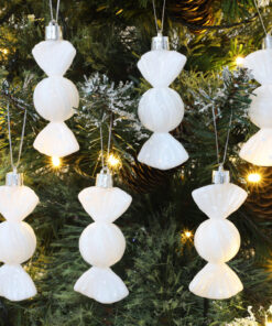 Christmas Concepts® Pack of 6–90mm Sweet Shaped Baubles – Shiny & Glitter Decorated – Christmas Tree Decorations (White)