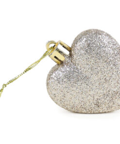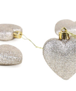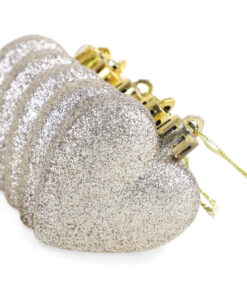 - This pack contains 8 heart baubles in total, decorated with a champagne gold glitter design.