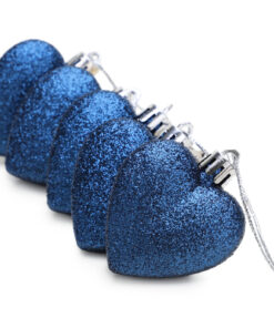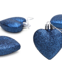 Christmas Concepts® Pack of 8 – 60mm Heart Shaped Christmas Tree Baubles – Glitter Decorated Baubles (Midnight Blue)