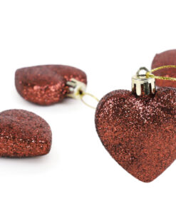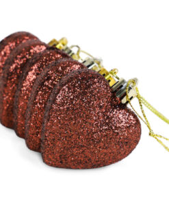 • This pack contains 8 heart baubles in total, decorated with a mocha glitter design.