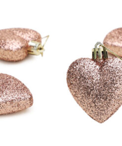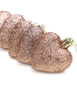 Christmas Concepts® Pack of 8 – 60mm Heart Shaped Christmas Tree Baubles – Glitter Decorated Baubles (Rose Gold)
