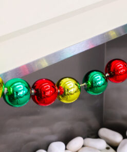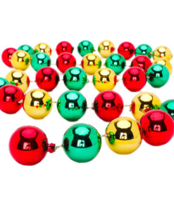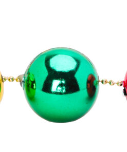 - The garland consists of 33 shiny red, green and gold baubles strung together on a 1.5m gold bead chain.