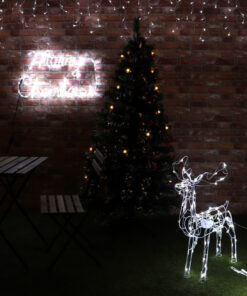 This rope light Merry Christmas sign would look stunning in the window or on the wall. The decoration measures 72 x 42cm. It has a sparkle feature which means the decoration has flashing bulbs which make the decoration look sparkling. This can be stopped to just static. LED lights are very bright, low voltage and energy efficient. Suitable for indoor and outdoor use. 1.5m lead wire.