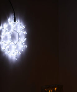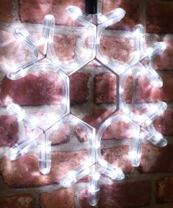 This eyecatching ropelight decoration is guaranteed to brighten up your house this christmas. It has twinkling bulbs amongst the piercing white lights to give it an even greater festive look. It has white LED bulbs that are low voltage, long lasting and energy efficient. This item comes with a 3m (9.8ft) wire from light to plug & attached metal hook for easy hanging. The snowflake measures 39cm x 39cm. Sutiable for indoor and outdoor use (plug must be kept inside).