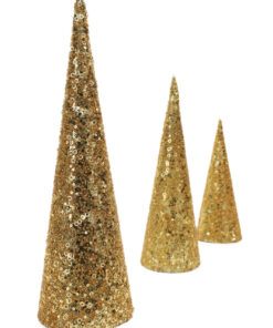 Bring some glitz into your home this Christmas with this set of 3 cone trees! Made from durable PVC, the trees are decorated in gold sequins and beads. The small tree measures 30cm x 11 cm diameter, the medium tree is 39cm x 12.5cm diameter and the large tree is 46.5cm x 14cm diameter. The decorations are very light and can be arranged to your personal taste. The decorations are very light and can be arranged to your personal taste. Designed and manufactured exclusivley for Christmas Concepts Ltd.