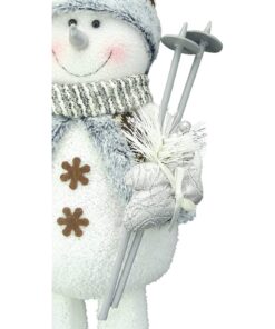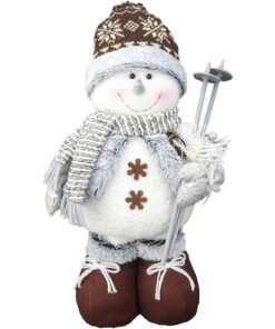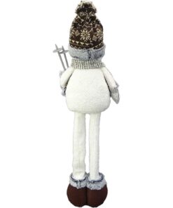 Bring some festive winter cheer to your home with this standing Snowman! Made from plush material and covered in fleece, the Snowman comes wearing a wooly hat and scarf and carrying a pair of ski poles. It also features telescopic legs which when extended make the Snowman 65cm tall. The Snowman would look great stood beside your Christmas tree! Would also fit in well amongst a Winter Wonderland theme Christmas display! Designed and manufactured exclusively for Christmas Concepts Ltd.