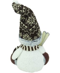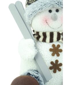 Bring some festive winter cheer to your home with this cute sitting Snowman plush! This fleece snowman is comes wearing a santa hat and scarf and holding a pair skis. It also has a weighted base to enable it to sit upright. The Snowman would look cute sitting beneath your Christmas tree or on your mantle piece! Would also fit in well amongst a Winter Wonderland theme Christmas display! Designed and manufactured exclusively for Christmas Concepts Ltd.