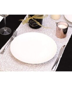 This table runner will look stunning at any event or even at home! A beautiful decoration to add to some sparkle! Great for Weddings, Christenings, Birthdays, Christmas parties and much more! It could be displayed on the top table, buffet table, cake table or even on every guest table. Great at home for family meals or even Christmas lunch! The table runner is white and is covered in sequins. It measures 13″ x 60″. The fabric is 100% polyester with taffeta backing.