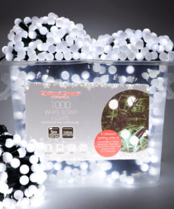 LED Berry Lights with 8 Function Controller – Indoor/Outdoor – Energy Efficient A++ – Christmas Lights (White, 1000)