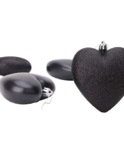Pack Of 12-100mm Glitter Heart Shaped Christmas Tree Baubles – Matte & Glitter Design – Christmas Decorations (Black)