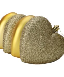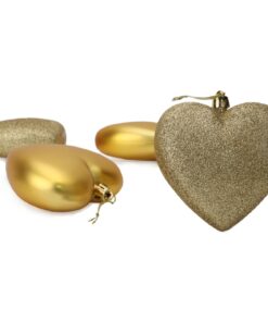 Pack Of 12-100mm Glitter Heart Shaped Christmas Tree Baubles – Matte & Glitter Design – Christmas Decorations (Gold)