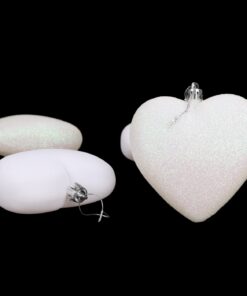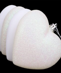 Pack Of 12-100mm Glitter Heart Shaped Christmas Tree Baubles – Matte & Glitter Design – Christmas Decorations (White)