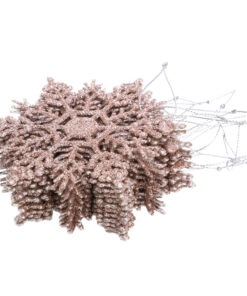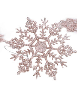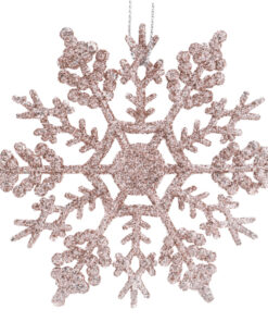 Pack of 12-10cm Glitter Snowflake Hanging Decorations – Christmas Decorations (Rose Gold)