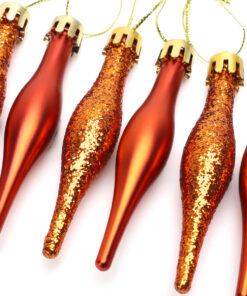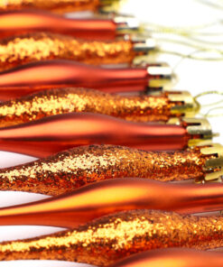 Pack Of 15-8.5cm Droplet Baubles – Matte & Glitter Design – Christmas Baubles (Copper)
