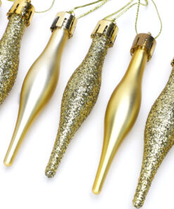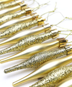 Pack Of 15-8.5cm Droplet Baubles – Matte & Glitter Design – Christmas Baubles (Gold)