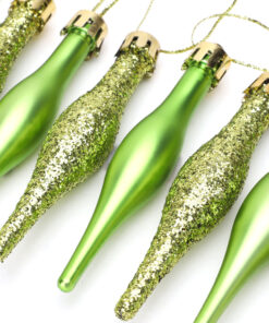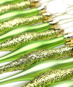 Pack Of 15-8.5cm Droplet Baubles – Matte & Glitter Design – Christmas Baubles (Lime Green)