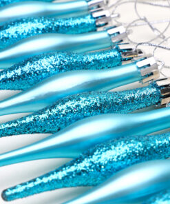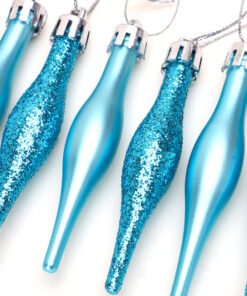 Pack Of 15-8.5cm Droplet Baubles – Matte & Glitter Design – Christmas Baubles (Turquoise)