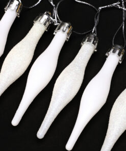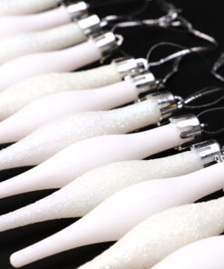 Pack Of 15-8.5cm Droplet Baubles – Matte & Glitter Design – Christmas Baubles (White)