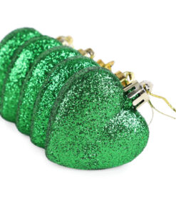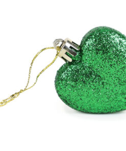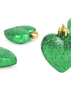 Pack of 16 – Glitter Heart Shaped Baubles – Christmas Tree Decorations (Emerald Green)