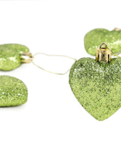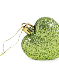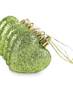 Pack of 16 – Glitter Heart Shaped Baubles – Christmas Tree Decorations (Lime Green)