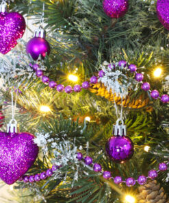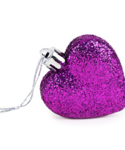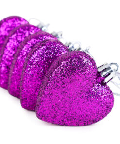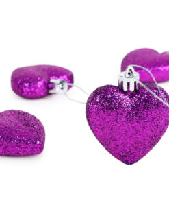 Pack of 16 – Glitter Heart Shaped Baubles – Christmas Tree Decorations (Purple)
