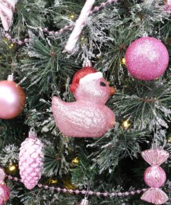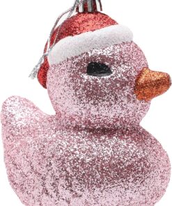 - Transform your Christmas tree with these delightful duck baubles! Each bauble is coated with Baby Pink glitter and adorned with a dapper Santa hat, adding a touch of festive flair to your seasonal display.