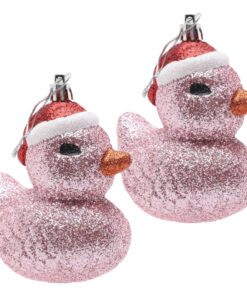- Transform your Christmas tree with these delightful duck baubles! Each bauble is coated with Baby Pink glitter and adorned with a dapper Santa hat, adding a touch of festive flair to your seasonal display.