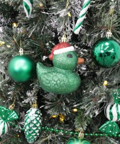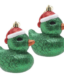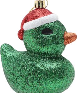 - Transform your Christmas tree with these delightful duck baubles! Each bauble is coated with Emerald green glitter and adorned with a dapper Santa hat, adding a touch of festive flair to your seasonal display.