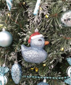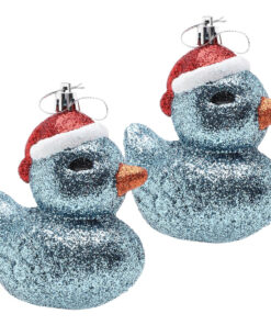 - Transform your Christmas tree with these delightful duck baubles! Each bauble is coated with ice blue glitter and adorned with a dapper Santa hat, adding a touch of festive flair to your seasonal display.