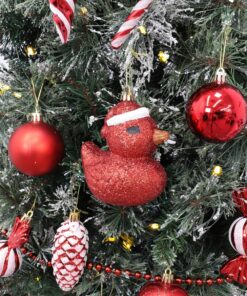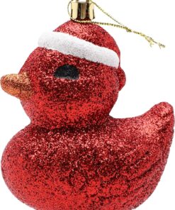 - Transform your Christmas tree with these delightful duck baubles! Each bauble is coated with Red glitter and adorned with a dapper Santa hat, adding a touch of festive flair to your seasonal display.