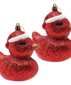 - Transform your Christmas tree with these delightful duck baubles! Each bauble is coated with Red glitter and adorned with a dapper Santa hat, adding a touch of festive flair to your seasonal display.