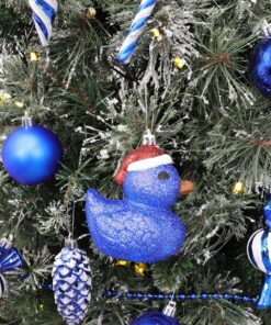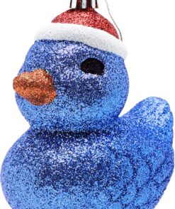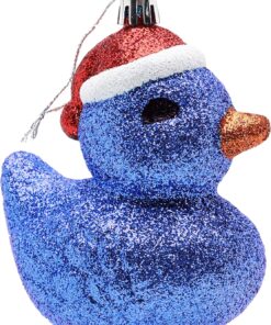 - Transform your Christmas tree with these delightful duck baubles! Each bauble is coated with Royal Blue glitter and adorned with a dapper Santa hat, adding a touch of festive flair to your seasonal display.