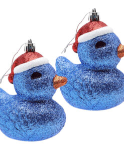 - Transform your Christmas tree with these delightful duck baubles! Each bauble is coated with Royal Blue glitter and adorned with a dapper Santa hat, adding a touch of festive flair to your seasonal display.
