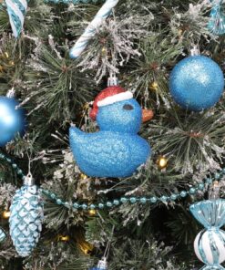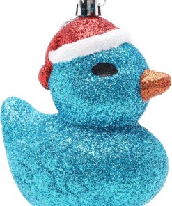 - Transform your Christmas tree with these delightful duck baubles! Each bauble is coated with turquoise glitter and adorned with a dapper Santa hat, adding a touch of festive flair to your seasonal display.