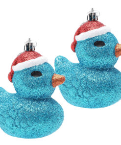 - Transform your Christmas tree with these delightful duck baubles! Each bauble is coated with turquoise glitter and adorned with a dapper Santa hat, adding a touch of festive flair to your seasonal display.