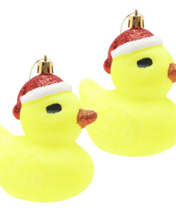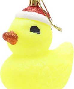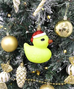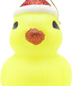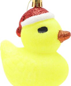 - Transform your Christmas tree with these delightful duck baubles! Each bauble is coated with Yellow glitter and adorned with a dapper Santa hat, adding a touch of festive flair to your seasonal display.