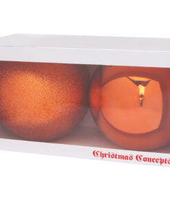 Pack Of 2-200mm Baubles – Shiny & Glitter Design – Giant Christmas Baubles (Copper)