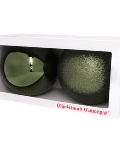 Pack Of 2-200mm Baubles – Shiny & Glitter Design – Giant Christmas Baubles (Forrest Green)