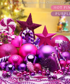 Pack Of 2-200mm Baubles – Shiny & Glitter Design – Giant Christmas Baubles (Hot Pink)