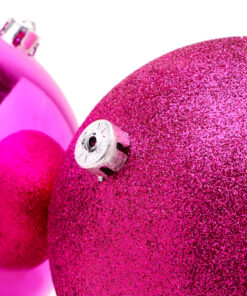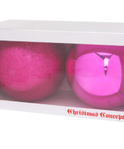 Pack Of 2-200mm Baubles – Shiny & Glitter Design – Giant Christmas Baubles (Hot Pink)
