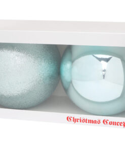Pack Of 2-200mm Baubles – Shiny & Glitter Design – Giant Christmas Baubles (Ice Blue)