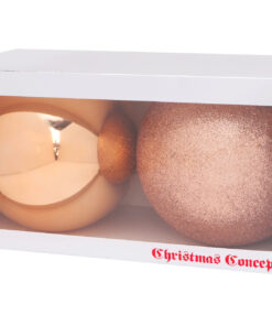 Pack Of 2-200mm Baubles – Shiny & Glitter Design – Giant Christmas Baubles (Rose Gold)