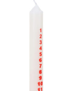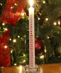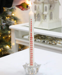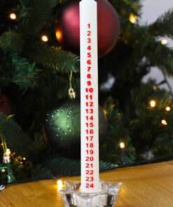 You will get 2 candles per pack measuring 25cm x 2.2cm. The candles are available in 2 colours: Red and Ivory. Countdown the days to Christmas with this traditional advent candle! A wonderful tradition that all the family can enjoy. Watch the excitement build up as the candle reaches another day closer to Christmas.