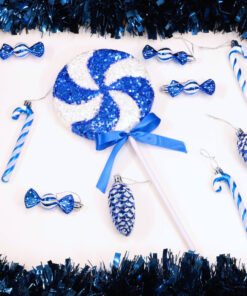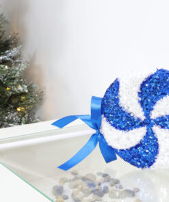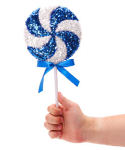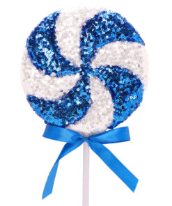 Pack of 2 – 36cm Giant Sparkly Sequin Lollipop Christmas Decoration- Royal Blue & White – Christmas Tree Ornaments
